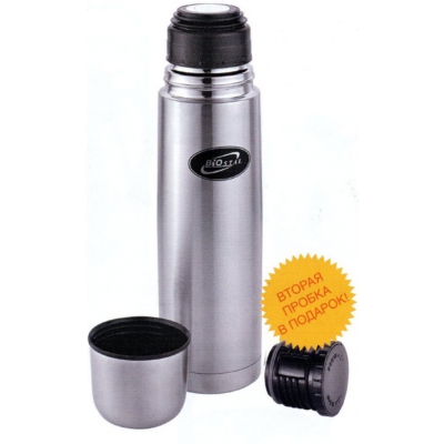 Термос предназначен для хранения горячих и холодных напитков (чая, кофе и пр.) и укомплектован двумя пробками (вторая пробка в подарок): пробка без кнопки надежна, проста в использовании и позволяет дольше сохранять тепло благодаря дополнительной теплоизоляции, пробка с кнопкой удобна в использовании и позволяет, не отвинчивая ее, наливать напитки после простого нажатия на кнопку.