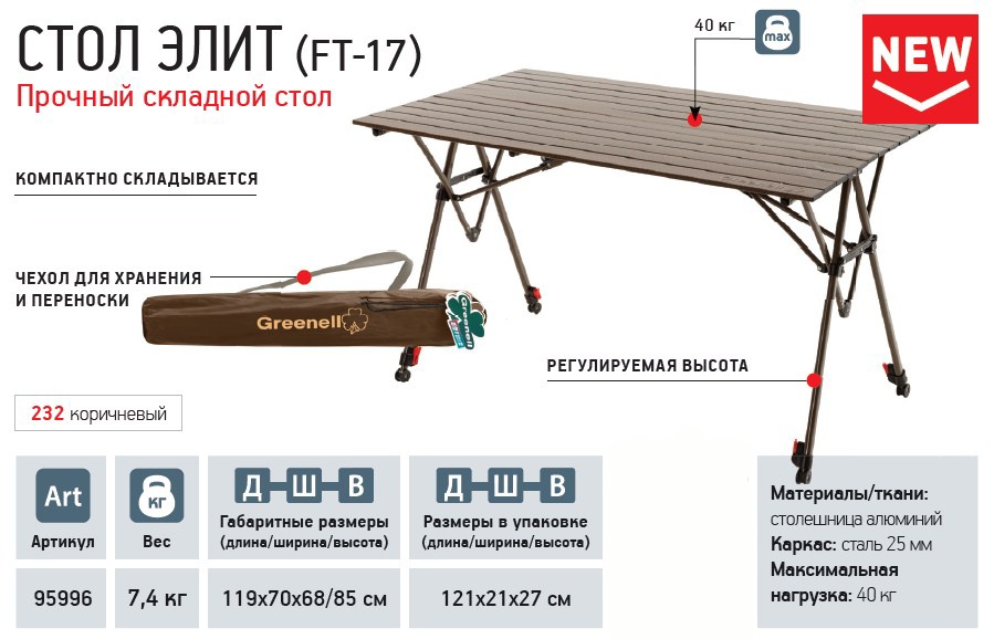 Складной стол Greenell Элит FT-17 с большим запасом прочности.