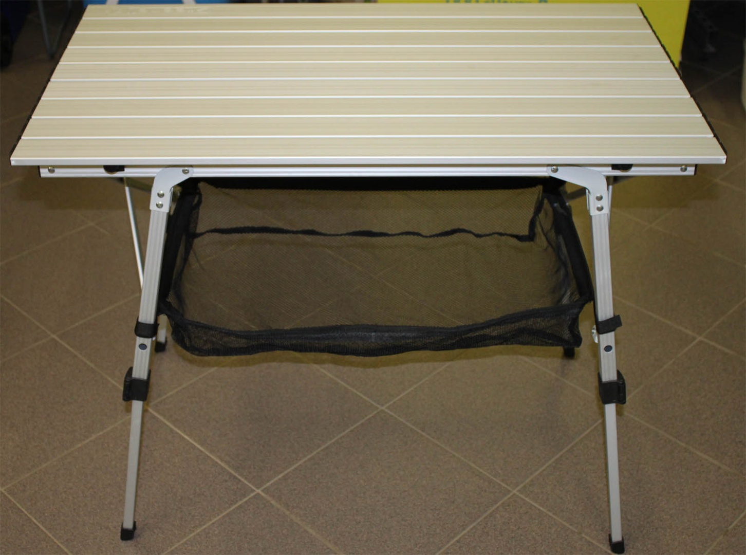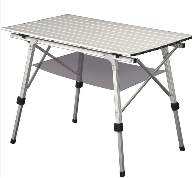 Конструкция стола (с телескопическим ножкам) дает возможность использовать его на любом рельефе, а также регулировать по высоте.