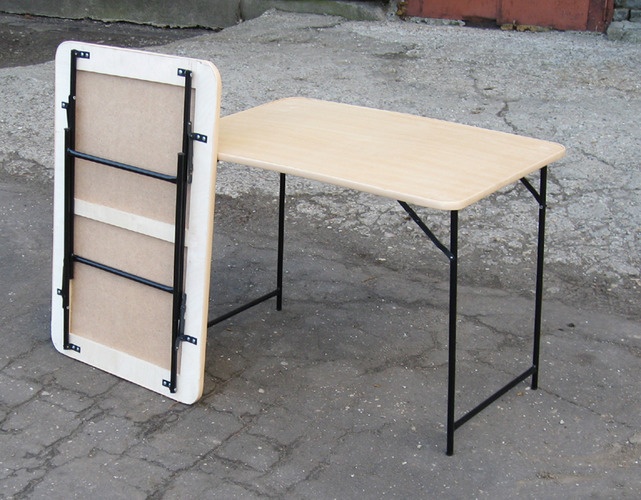Легкий и прочный складной стол, незаменимый одновременно и для похода, и для использования в торговых целях, имеет минималистский дизайн и компактные габаритные размеры. Столешница изготовлена из ламинированного ДВП. Ножки стола изготовлены из стальной трубы Ø 16 мм.