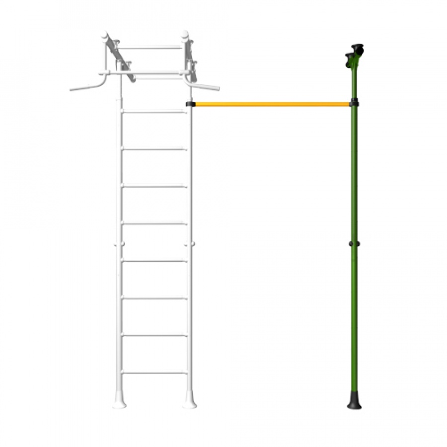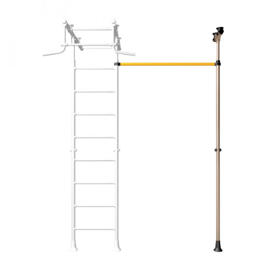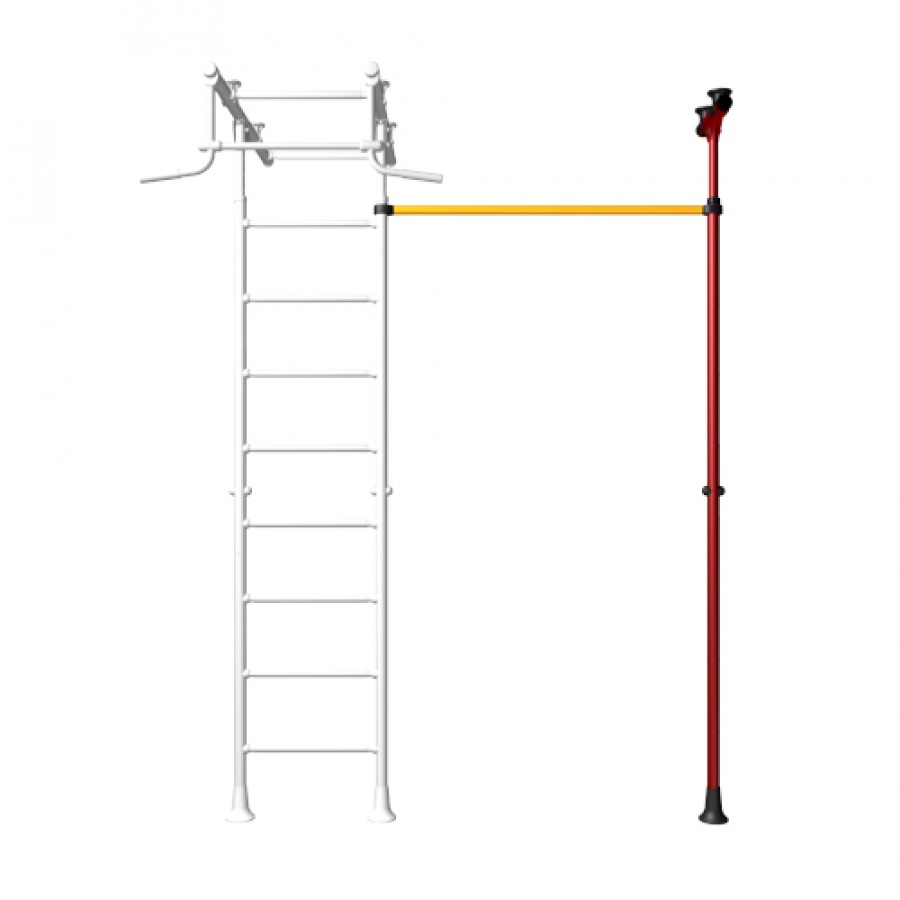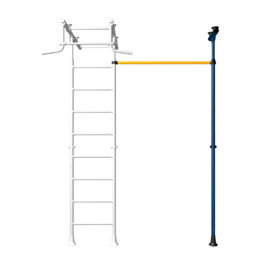 Крепится враспор между полом и потолком и к стойкам распорного детского спортивного комплекса.