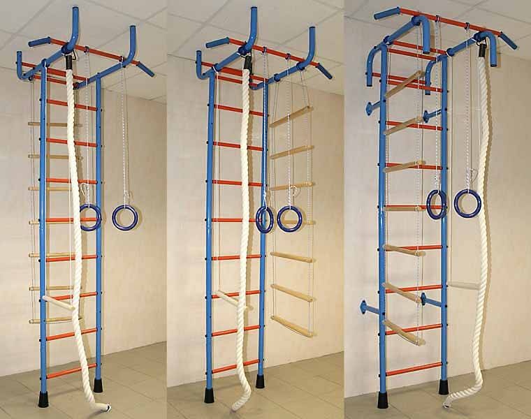 Детский спортивный комплекс ДСК-4 «Альпинистик» (широкий хват) с турником предназначен для выполнения различных общеразвивающих и укрепляющих спортивных упражнений в домашних условиях и других помещениях с высотой потолка до 3,0 м.