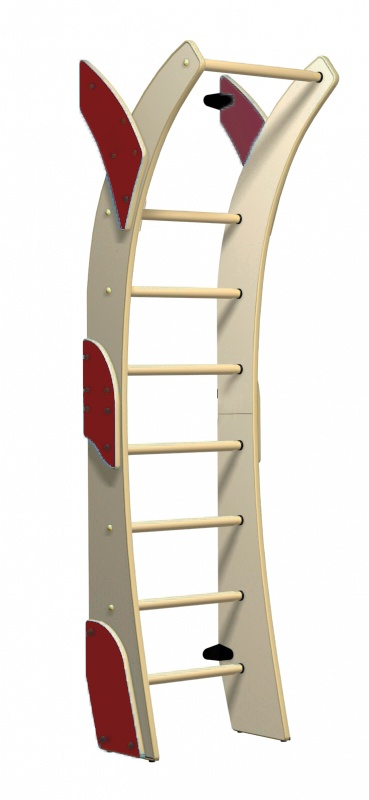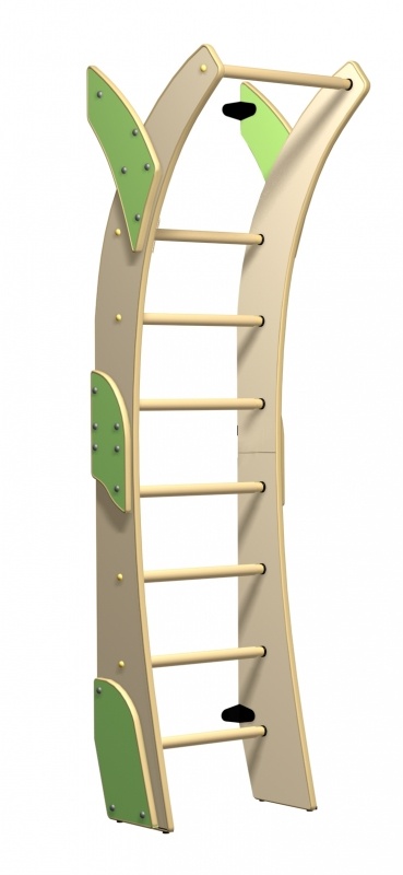 Шведская стенка выполнена из натуральных материалов. Все деревянные части по краям имеют небольшие округленные скосы, обеспечивая дополнительную безопасность малышей.