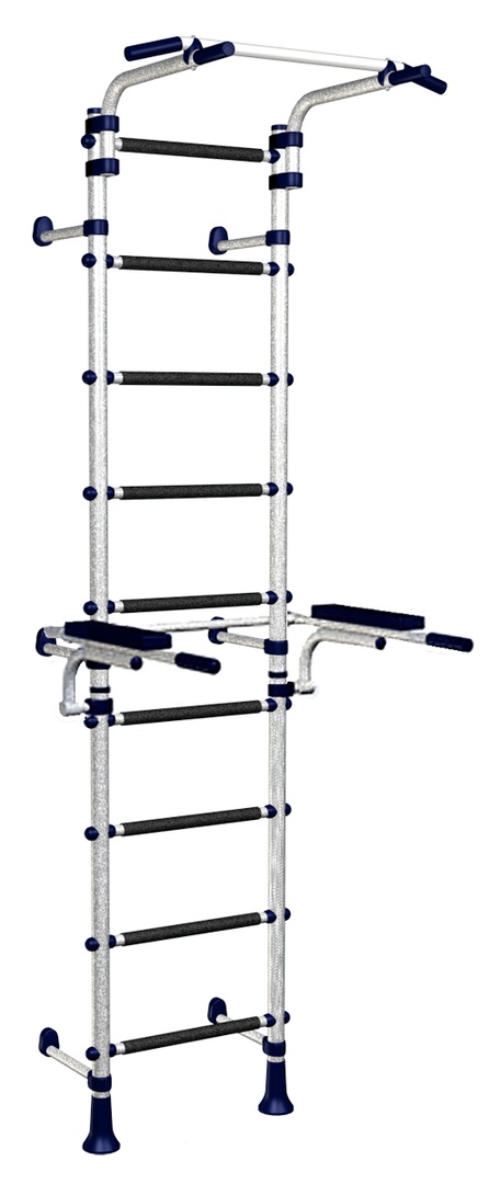 Комплекс представляет собой сборно-разборную навесную металлическую конструкцию. Крепится к стене. Серия: Мечта Тинейджера идеально подходит для подростков 10-17 лет. При малых размерах в сложенном виде комплекс позволяет выполнять много различных упражнений. Металлическая шведская лестница.