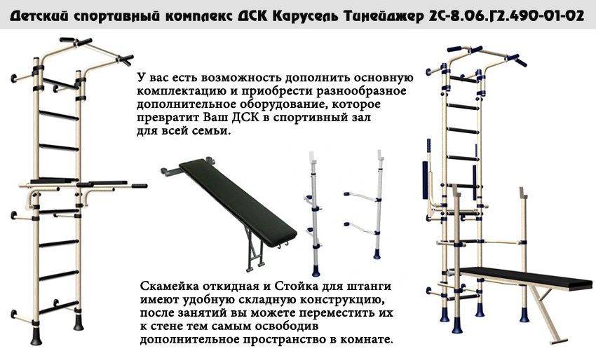 К каждому комплексу прилагается все необходимые детали, крепления и качественное подробное описание, схема и инструкция по сборке, поэтому все комплексы не сложно собрать собственными силами.
