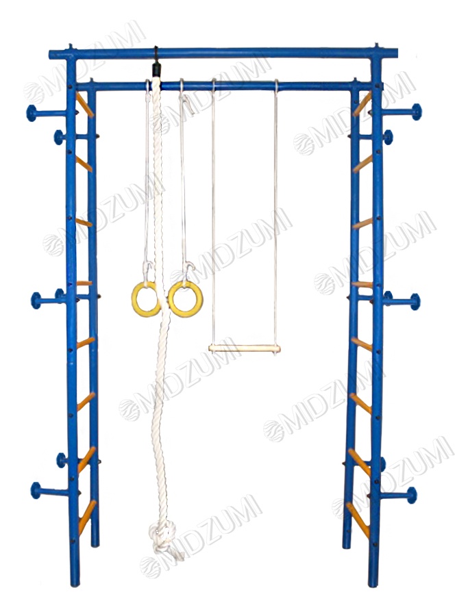 | Комплектация | основа - металлическая шведская стенка П-образной формы, навесной турник, канат, веревочная лестница, гимнастические кольца, трапеция |