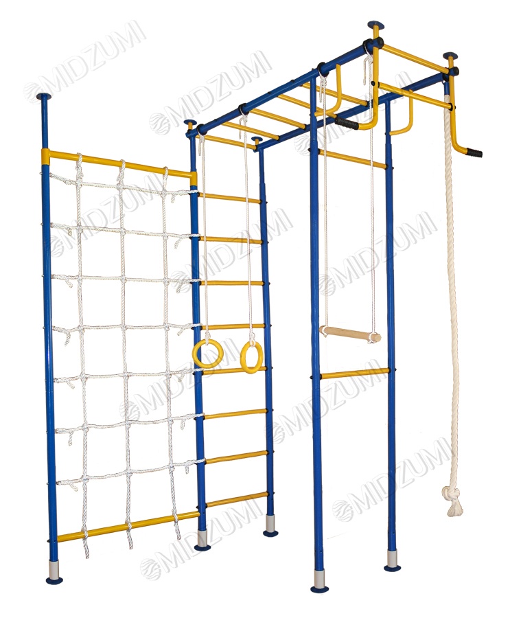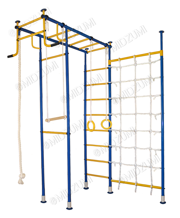 | Комплектация | основа - металлическая шведская стенка П-образной формы с турником, гимнастические кольца, канат, трапеция, канатный лаз |