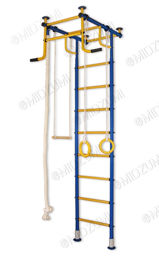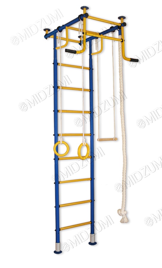| Комплектация | основа - металлическая шведская стенка Г-образной формы с турником, гимнастические кольца, канат, веревочная лестница, трапеция |