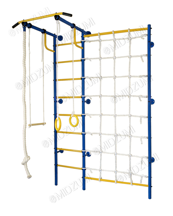 | Комплектация | основа - металлическая шведская стенка Г-образной формы с турником, гимнастические кольца, канат, трапеция, канатный лаз |