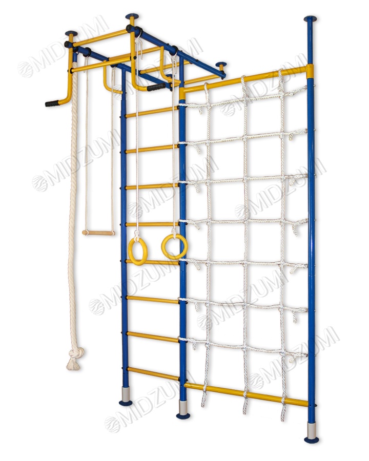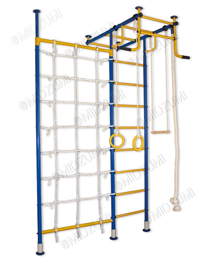 Торговый Дом Midzumi представляет новинку Детский спортивный комплекс Midzumi Seiko. Диаметр стойки ДСК Продукция торгового дома Midzumi обладает усиленной конструкцией верхних опорных труб толщиной 2мм, созданной с учетом основных требований техники безопасности. В результате металлическая конструкция легко выдерживает необходимую нагрузку, обеспечивая максимальную безопасность занятий. Прочная металлическая конструкция Midzumi Seiko позволяет выдерживать пользователей весом до 100 кг, начиная от самых маленьких детей, до подростков и их родителей! Крепление враспор прекрасно подойдет тем, кто не хочет портить обои и сверлить стены. Крепление враспор между полом и потолком надежно ни чуть не меньше крепления к стене, к тому же такой комплекс при необходимости можно легко перенести на другое место. При выборе комплекса обратите внимание на материал Вашего потолка. Если он выполнен из хрупких материалов, таких как гипсокартон (навесные потолки) и вагонка, то для Вас лучше подойдут пристенные модели. Металлическая шведская стенка Midzumi Seiko имеет турник с большим выносом от самой стенки. Благодаря такому дизайну появляется возможность добавить в комплекс навесное оборудование такое как канат, трапеция и кольца . Дополнительно к шведской стенке крепится канатный лаз. Канатная сетка шириной в 1 м. расширяет место для увлекательных приключений. Ее можно установить справа или слева от шведской стенки. Дети очень увлекаются игрой на шведской стенке, особенно интересно когда есть возможность перепрыгивать с одного снаряда на другой. В ДСК Midzumi Seiko есть все необходимое для выполнения различных общеразвивающих и укрепляющих упражнений в домашних условиях. Seiko можно использовать как для развлечений, так и для занятий спортом. Торговый Дом Midzumi включает в свои комплексы все Ваши интересы. Среди богатого разнообразия детских спортивных комплексов Midzumi, каждый найдет то, что интересно именно ему.