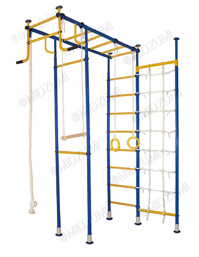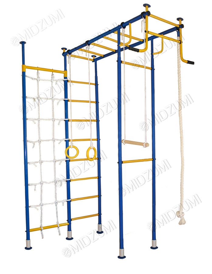 | Комплектация | основа - металлическая шведская стенка П-образной формы с турником, гимнастические кольца, канат, трапеция, канатный лаз |