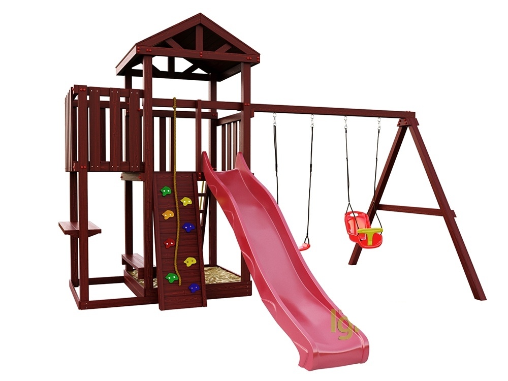 | Комплектация | конструкция Башни, стойки из клееного бруса 90х90; конструкция скалодром с камнями; конструкция балкон; волновая горка 3 м (любого цвета на выбор); качели одиночные 1 шт. (любого цвета на выбор); качели со спинкой 1шт. (любого цвета на выбор); песочница; деревянная лестница; комплект фурнитуры; руководство по сборке |