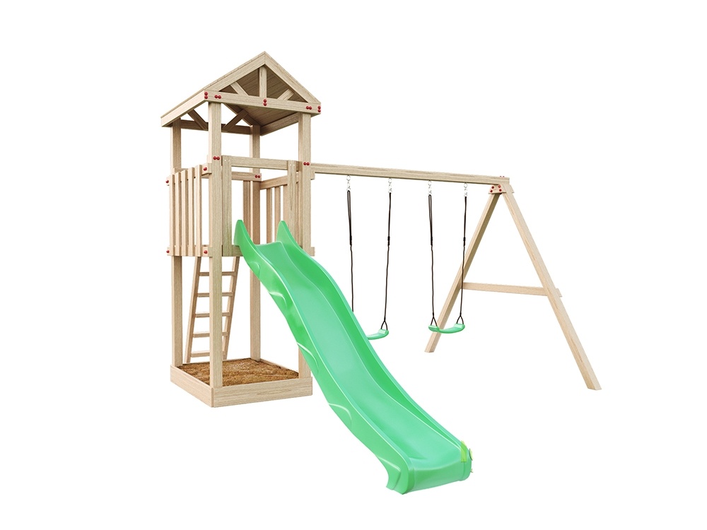 | Комплектация | конструкция Башни, волновая горка 3 м (любого цвета на выбор), качели одиночные 2 шт. (любого цвета на выбор), песочница, деревянная лестница, комплект фурнитуры, руководство по сборке |