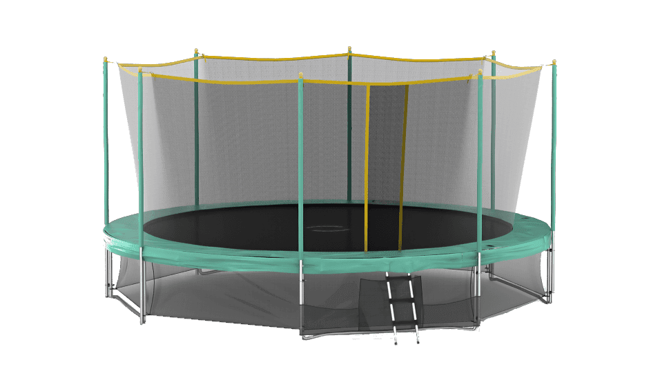 | Комплектация | батут, защитный мат, защитная сеть, нижняя защитная сеть, лестница |