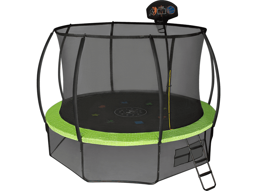 | Комплектация | рамная конструкция, защитный мат, защитная сеть, нижняя защитная сеть, лестница, баскетбольное кольцо, мяч, насос |