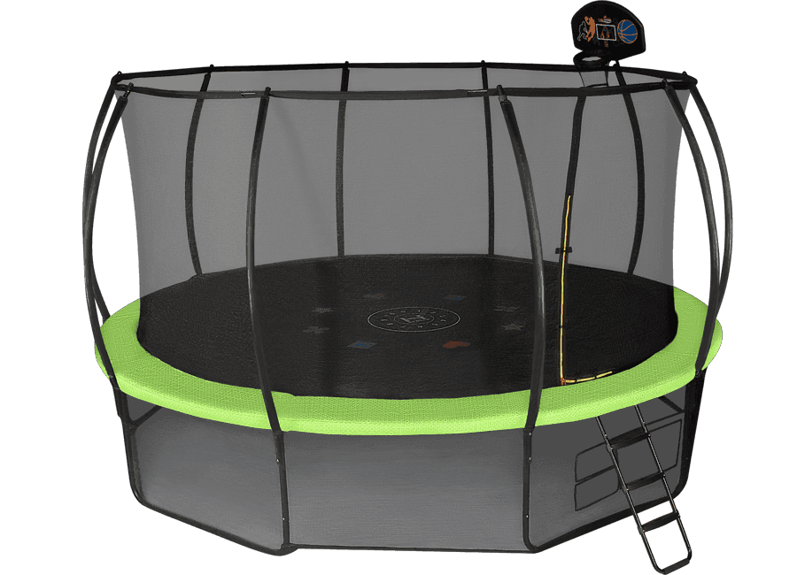 | Комплектация | рамная конструкция, защитный мат, защитная сеть, нижняя защитная сеть, лестница, баскетбольное кольцо, мяч, насос |