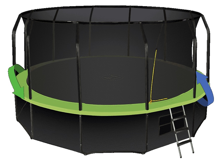 | Комплектация | батут, защитный мат, защитная сеть, нижняя защитная сеть, лестница |