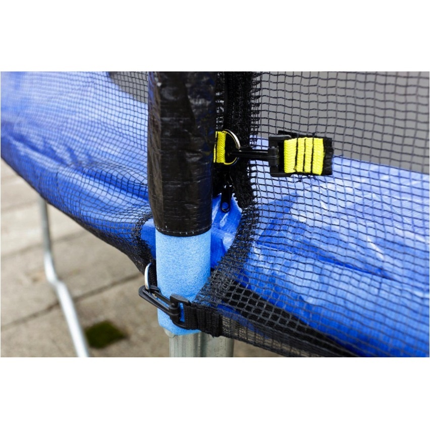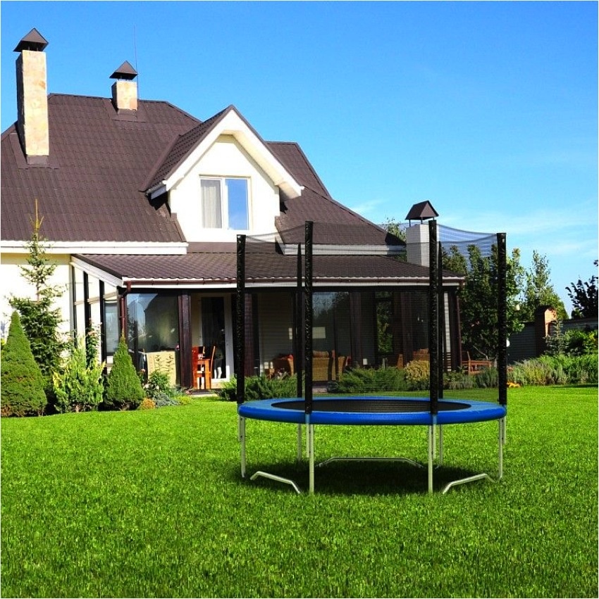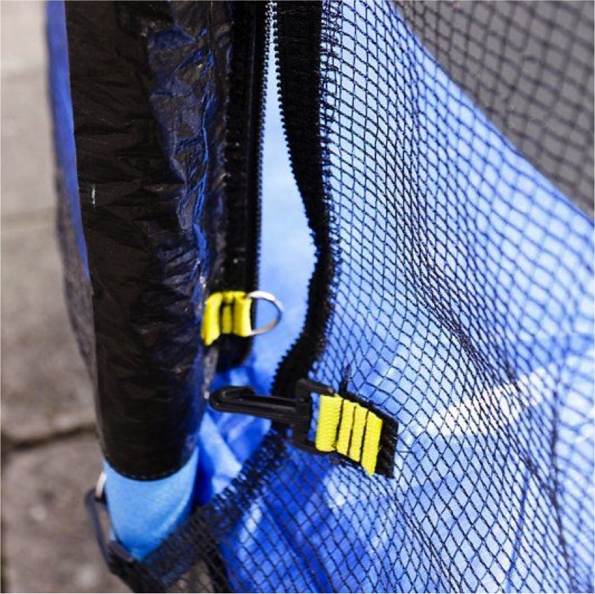 Защитный мат закрывает все твердые части конструкции. Высокопрочная рама изготовлена из оцинкованных стальных труб. Основание батута - W-образные ноги, обеспечивают хорошую устойчивость.