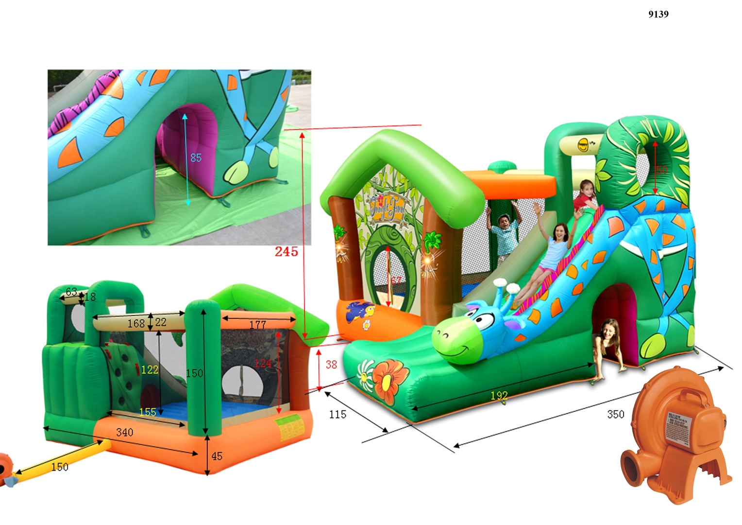 Купив этот игровой центр, вы покатаетесь на горке - жирафе, попрыгаете на игровом батуте вместе с друзьями. Можно полазить в туннеле под горкой. Это один из самых ярких надувных батутов серии Happy Hop.