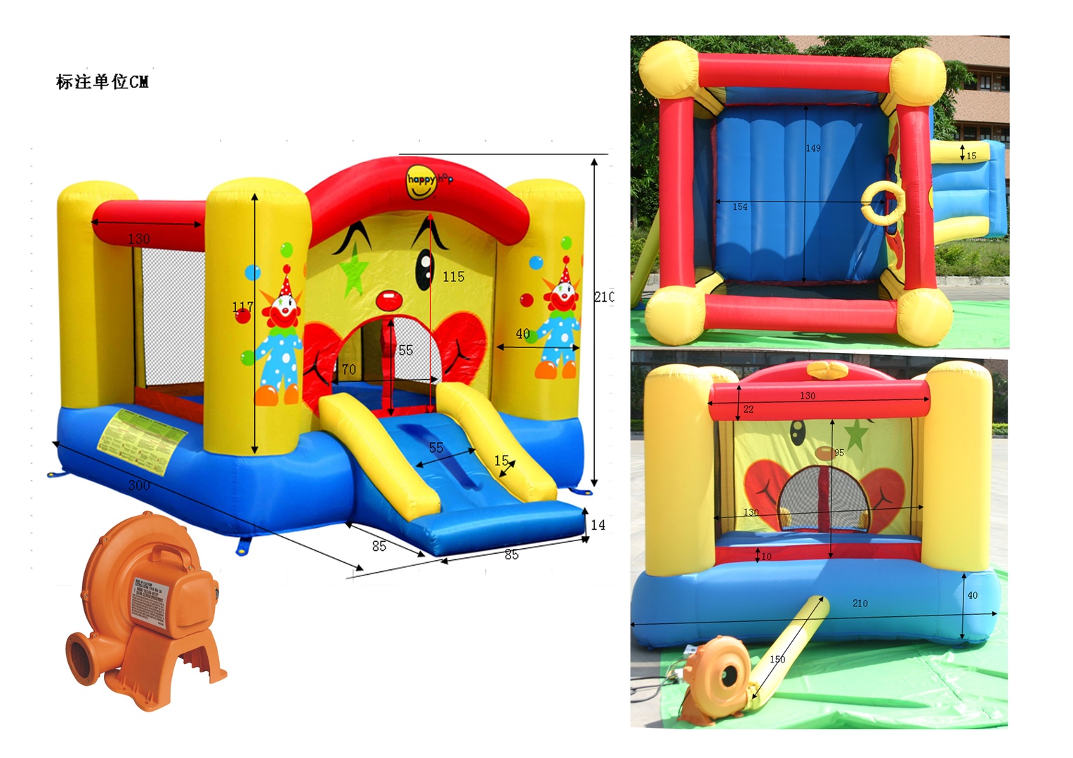 Красивый и удобный надувной батут Happy Hop 9201.Его можно назвать как смешной игровой домик, посмотрите сами - яркая детская покраска в стиле цирка. Можете поиграть с детьми в клоунов, разыгать представление. Побегать, порезвиться и конечно попрыгать.