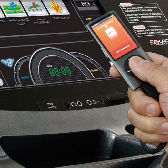 Полная интеграция с IPOD и IPHONE позволяет управлять списком воспроизведения музыки и просматривать видео непосредственно с дисплея беговой дорожки.