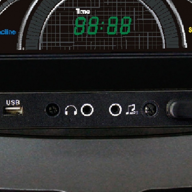 На дисплее отображается информация о пульсе, скорости, пройденной дистанции, калориях, подъеме, темпе, времени тренировки, ТВ каналах, громкости.