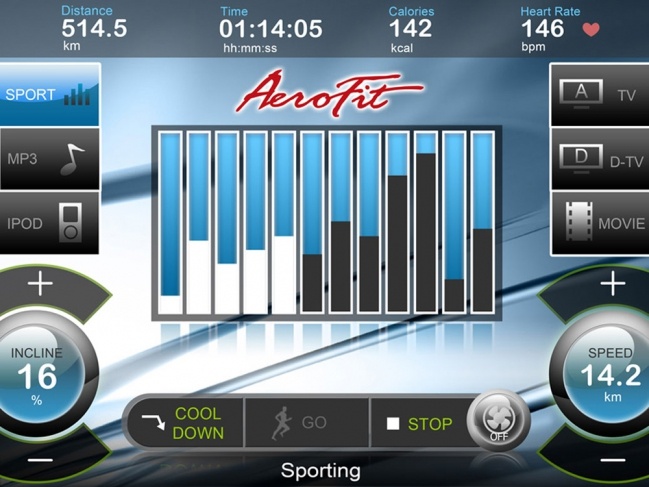 Беговая дорожка Aerofit X5-T – это настоящий развлекательный мультимедийный центр. Огромный 15-дюймовый экран позволяет погружаться в увлекательный мир развлечений и перемещает пользователей в другую реальность. Жидкокристаллический дисплей X5 Sensation с технологией TOUCH SCREEN обеспечивает превосходную передачу видеофильмов и изображений на экран беговой дорожки.