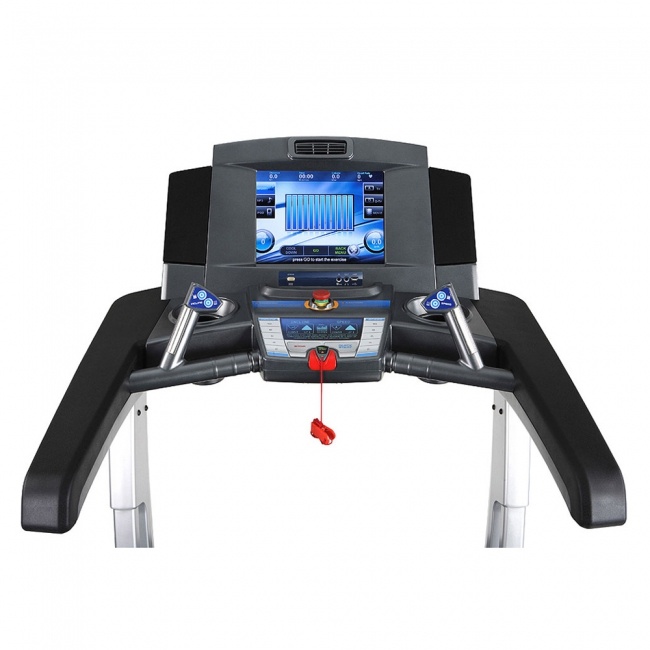 Для еще большего комфорта, беговая дорожка Aerofit X5-T оснащена дополнительной системой управления Ergo-Bar. Благодаря Ergo-Bar, все основные кнопки управления расположены прямо «под рукой». Здесь же расположена кнопка экстренной остановки и ключ безопасности, предотвращающий появление несчастных случаев. Два удобных джойстика с дополнительными кнопками изменения угла подъема и скорости, позволяют регулировать параметры тренировки, не отрывая рук от сенсорных датчиков пульса.