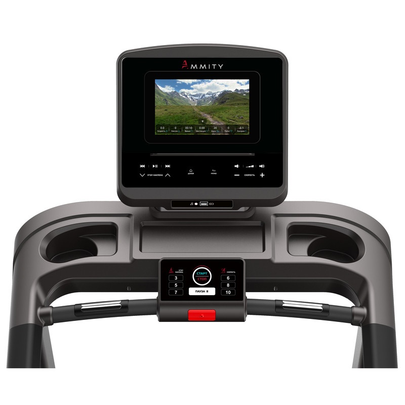 Беговая дорожка AMMITY серии Fashion модель FTM 5120 TFT – отличается мультимедийной консолью. Высококачественный цветной сенсорный дисплей 10,1” и программное обеспечение содержат не только тренировки с виртуальным ландшафтом, но и воспроизводят любые видео и аудио файлы, поддерживает подключение к сети интернет (WiFi). Тяжелая надежная рама, прочная дека, валы диаметром 50/46 мм и мощный двигатель 3,5 л.с. рассчитаны для пользователей до 150 кг. Качественные комплектующие обеспечивают стабильную работу и низкий уровень шума при любой нагрузке в диапазоне от 0,8 до 20 км/ч.