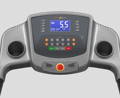 В рамках своих основных характеристик дорожка APPLEGATE T30 ADC занимает уверенную середину и является оптимальным вариантом для большинства пользователей. Движение полотна на скорости от 0,8 до 14 км/ч обеспечивает надежный двигатель постоянного тока мощностью 2,0 л.с. производства Schneider Electric. Параметры мотора позволяют заниматься на тренажере пользователям весом вплоть до 130 кг. Размер бегового полотна составляет 125 см в длину и 40 см в ширину – это вполне комфортные размеры как для ходьбы, так и бега. Угол наклона регулируется электрическим путем в диапазоне от 0 до 15%.