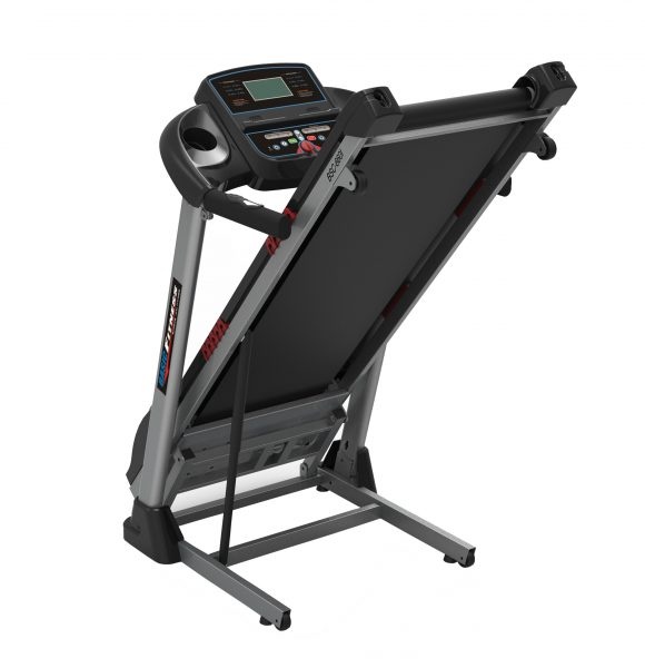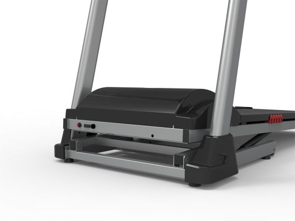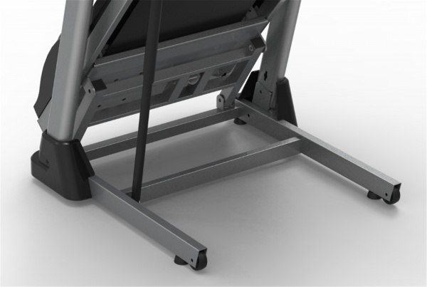 Беговая дорожка имеет складную конструкцию, транспортировочные ролики, и газовый амортизатор, который обеспечивает плавное опускание бегового полотна.