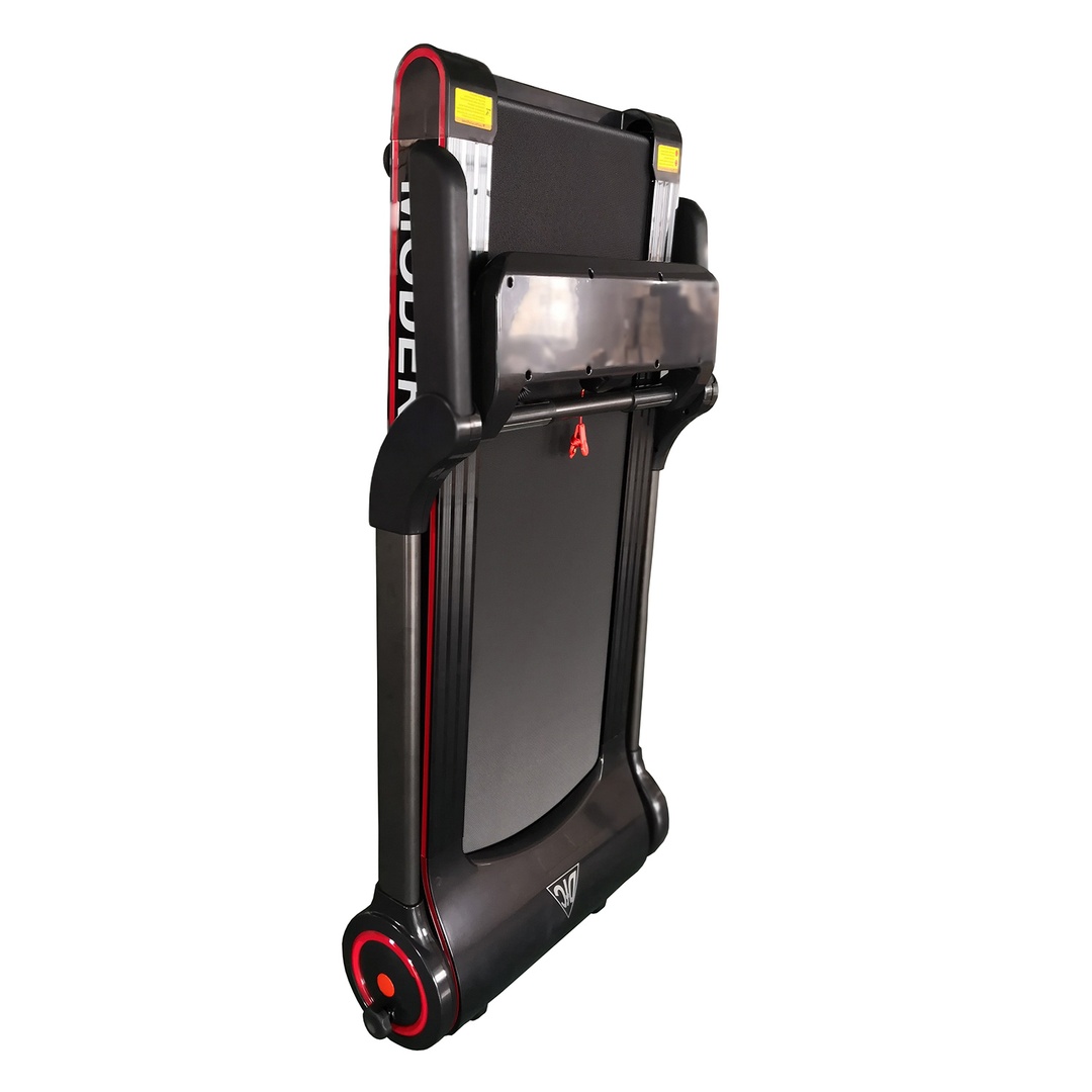 Изюминкой беговой дорожки MODERN B является уникальная система складывания. Дорожка после сборки становится в прямом смысле компактной. Если у обычной дорожки для хранения вы можете только поднять беговое полотно под небольшим углом, и немного уменьшить площадь хранения на полу.