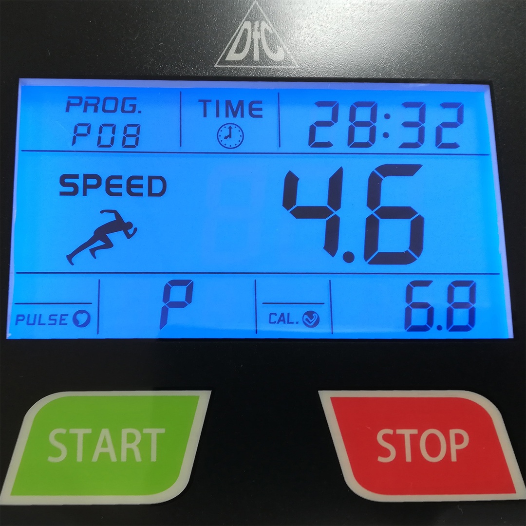 Консоль беговой дорожки оснащена 5-дюймовым LCD-дисплеем с голубой подсветкой, отображает всю необходимую пользователю информацию во время тренировки: скорость, пройденное расстояние, сжигаемые калории, частоту пульса.
