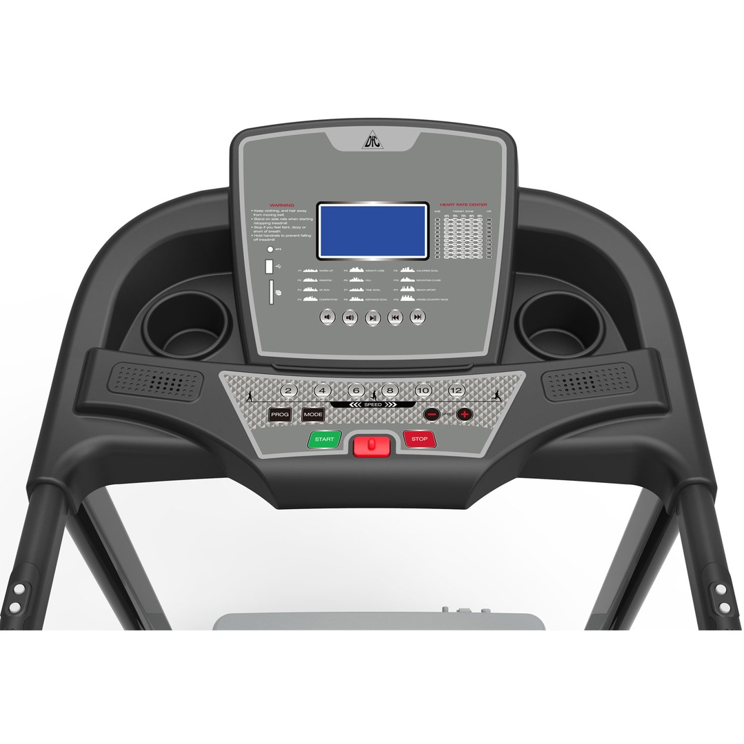 Мотор мощность 2.0 л.с. и механическая регулировка угла наклона позволят заниматься пользователям весом до 110 кг с разным уровнем подготовки. Встроенные динамики звуковой системы и возможность подключения дополнительных устройств через разъемы MP3 и USB помогут провести тренировку под любимую мелодию. Встроенные в поручни датчики позволят следить за частотой сердечных сокращений.