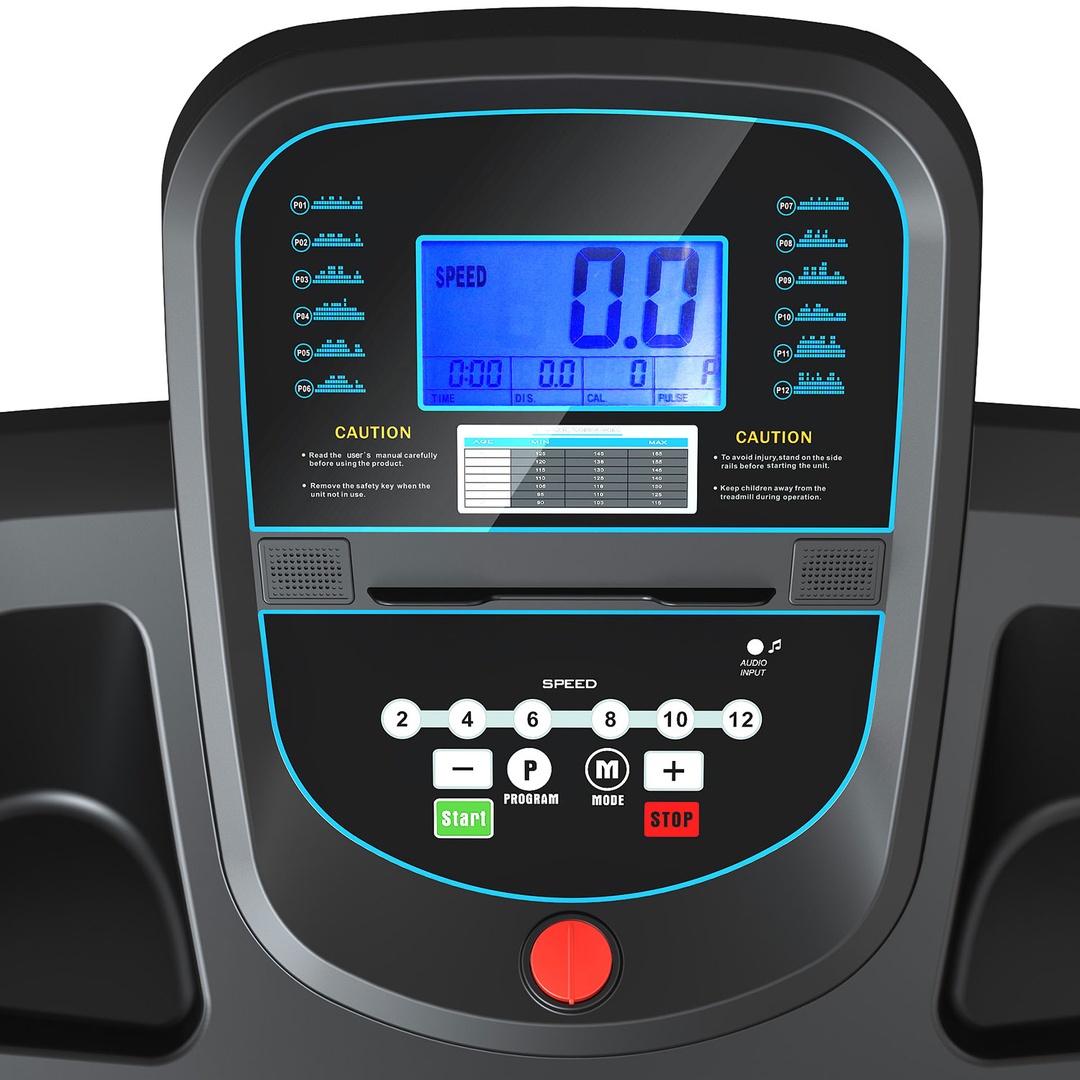Консоль беговой дорожки оснащена LCD-дисплеем с голубой подсветкой, отображает всю необходимую пользователю информацию во время тренировки: скорость, пройденное расстояние, сжигаемые калории, частоту пульса.