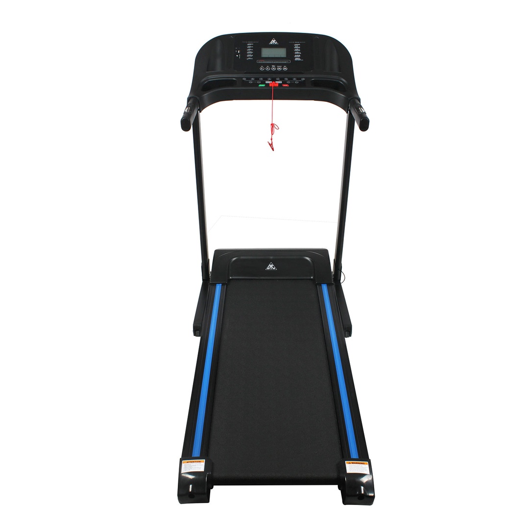 Тренажер имеет двигатель постоянного тока мощностью 1,5 л.с. Угол наклона бегового полотна регулируется с помощью дополнительного электромотора. На консоли есть кнопки быстрого выбора нужного значения.