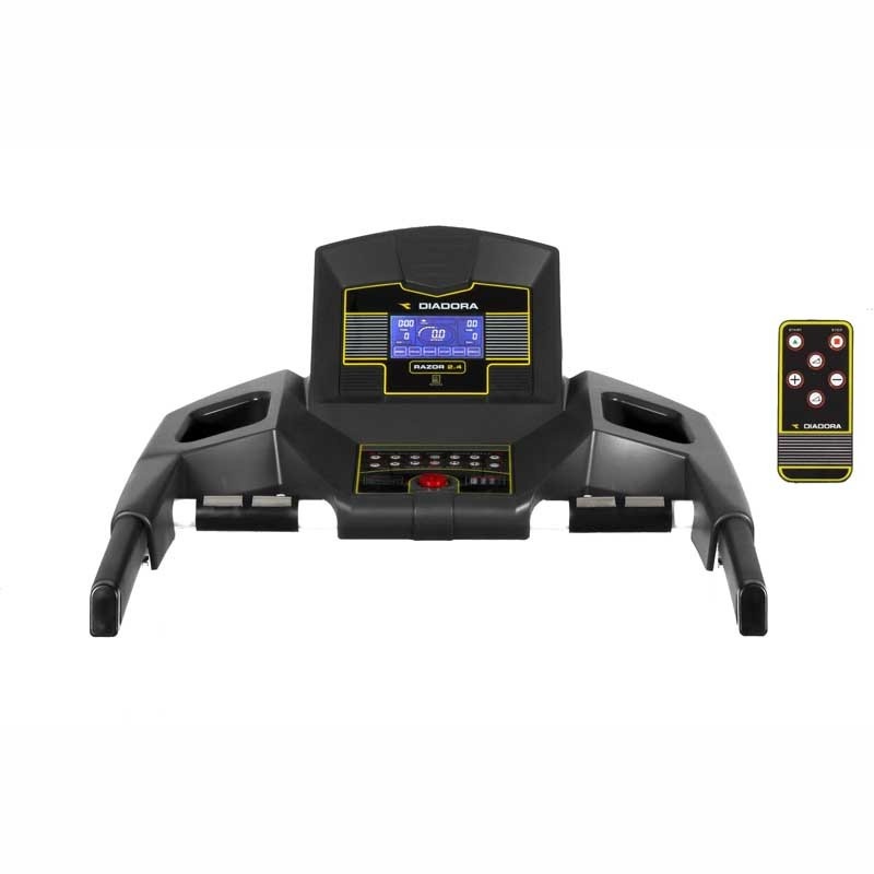 Беговая дорожка для дома Diadora Razor 2.4 Dark с усиленным мотором мощностью 2.0 л.с. разгоняет беговое полотно до 16 км/ч с пользователем весом до 120 кг. Двухслойное полотно для бега размером 120х42 см создает достаточную площадь для бега. Снижение нагрузки с позвоночника и суставов происходит посредством гашения импульсов эластомерами встроенными в деку тренажера.