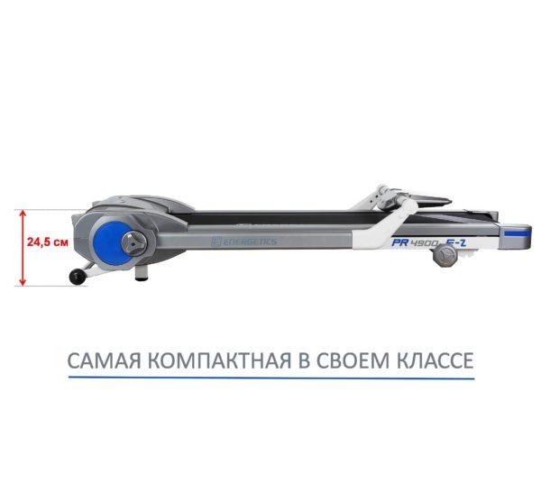 Беговая дорожка Energetics PR 4900P E-Z c инновационной системой складывания – самая компактная дорожка из последних разработок фитнесс индустрии, которая сэкономит полезное пространство в вашей квартире. Ее можно хранить в шкафу, под кроватью, в кладовке, в нише или просто у стены, так как толщина дорожки в сложенном виде составляет всего 24 см.