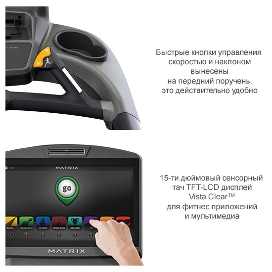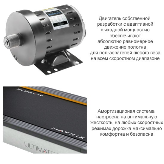 Беговые дорожки MATRIX совмещают в себе самые передовые технологии, лучшие материалы и комплектующие, великолепный дизайн и непререкаемое качество. Тысячи инсталляций, различные престижные награды, признание и статус постоянного поставщика ведущих мировых сетевых клубов (Gold's Gym, LA Fitness, SNAP Fitness), гостиничных сетей (Hayatt, Four Seasons, Hilton), государственных служб (полиция и пожарная служба США), корпоративных офисов, университетов и рекреационных центров.