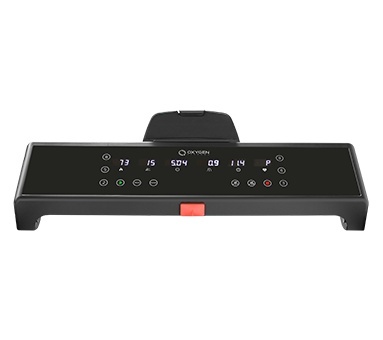 Модель OXYGEN T-COMPACT A имеет весь необходимый набор для проведения эффективных тренировок. Информативная консоль с 6-ю яркими, буквенно-цифровыми LCD-дисплеями, отображает следующие показатели: калории, программы, время, расстояние, скорость и настройки. Все показатели изменяются при помощи сенсорных кнопок. В памяти консоли содержится 19 программ, 15 из которых помогут пользователям начать тренировочный процесс в независимости от их уровня подготовки (ходьба, быстрая ходьба, средний бег, бег трусцой, снижение веса, темповая тренировка, разминочный бег, подготовка к марафону, сжигание жира, аэробный бег, развитие скорости, интервальные тренировки, развитие выносливости, легкий бег, фартлек). Сделать упор на конкретный показатель можно при помощи режима целевых тренировок (дистанция, калории, время). Помимо установленных программ, можно воспользоваться регулируемым ручным режимом. Подставка для гаджетов имеет специальный регулятор, необходимый для фиксации устройств различных размеров.
