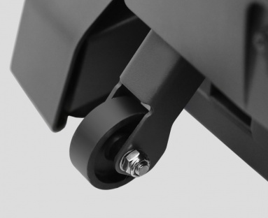Поскольку дорожка тяжелая, для ее перемещения используются не 2 (как это принято в классическом варианте), а 4 транспортировочных ролика. Тренажер не нужно наклонять, транспортировка происходит с опорой на все 4 ролика.