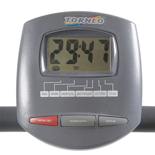 Пульс измеряется с помощью удобных датчиков сердечного ритма, встроенных в поручни. На дисплее отображаются следующие данные: время тренировки, дистанция, скорость, расход калорий и пульс. Встроенный фитнес-тест для оценки общего физического состояния пользователя.