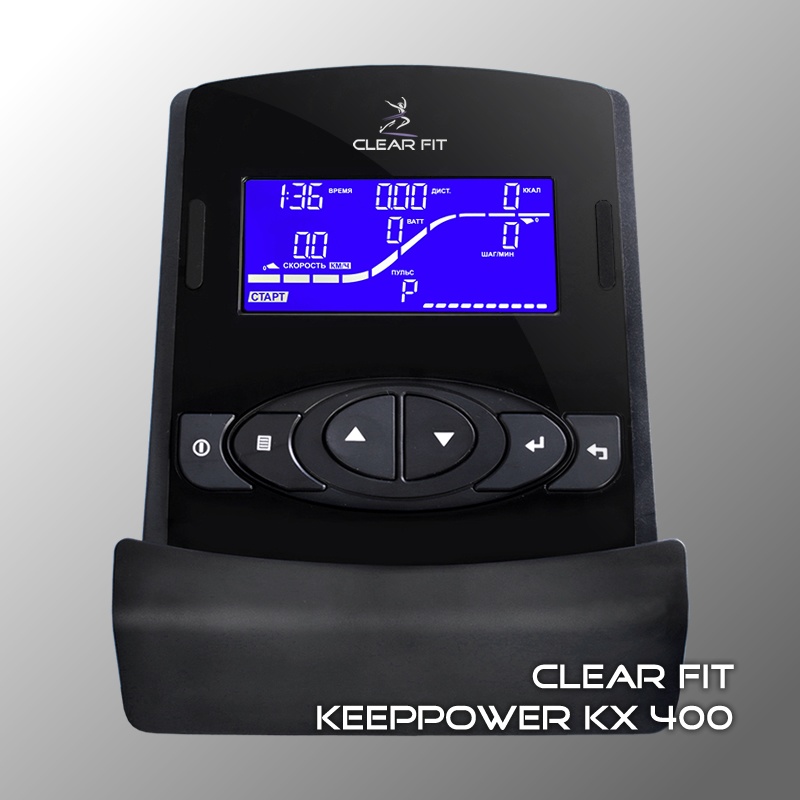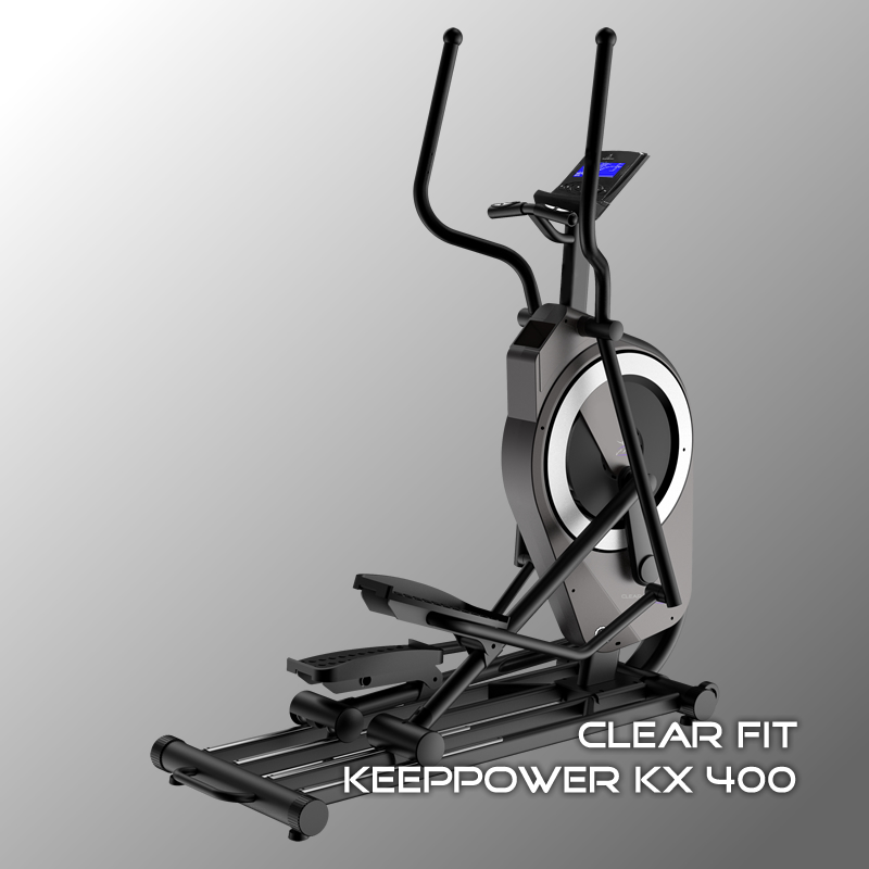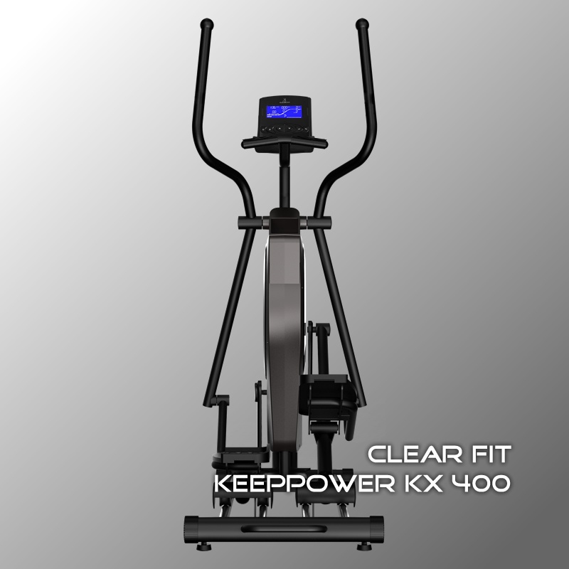 Модель Clear Fit KХ 400 серии KeepPower отличается компактной конструкцией тренажера – переднерасположенный маховик и вертикальная система привода значительно уменьшает габариты тренажера в рабочем состоянии, при этом правильная траектория, параметры шага и полезная длина трека сохранены.