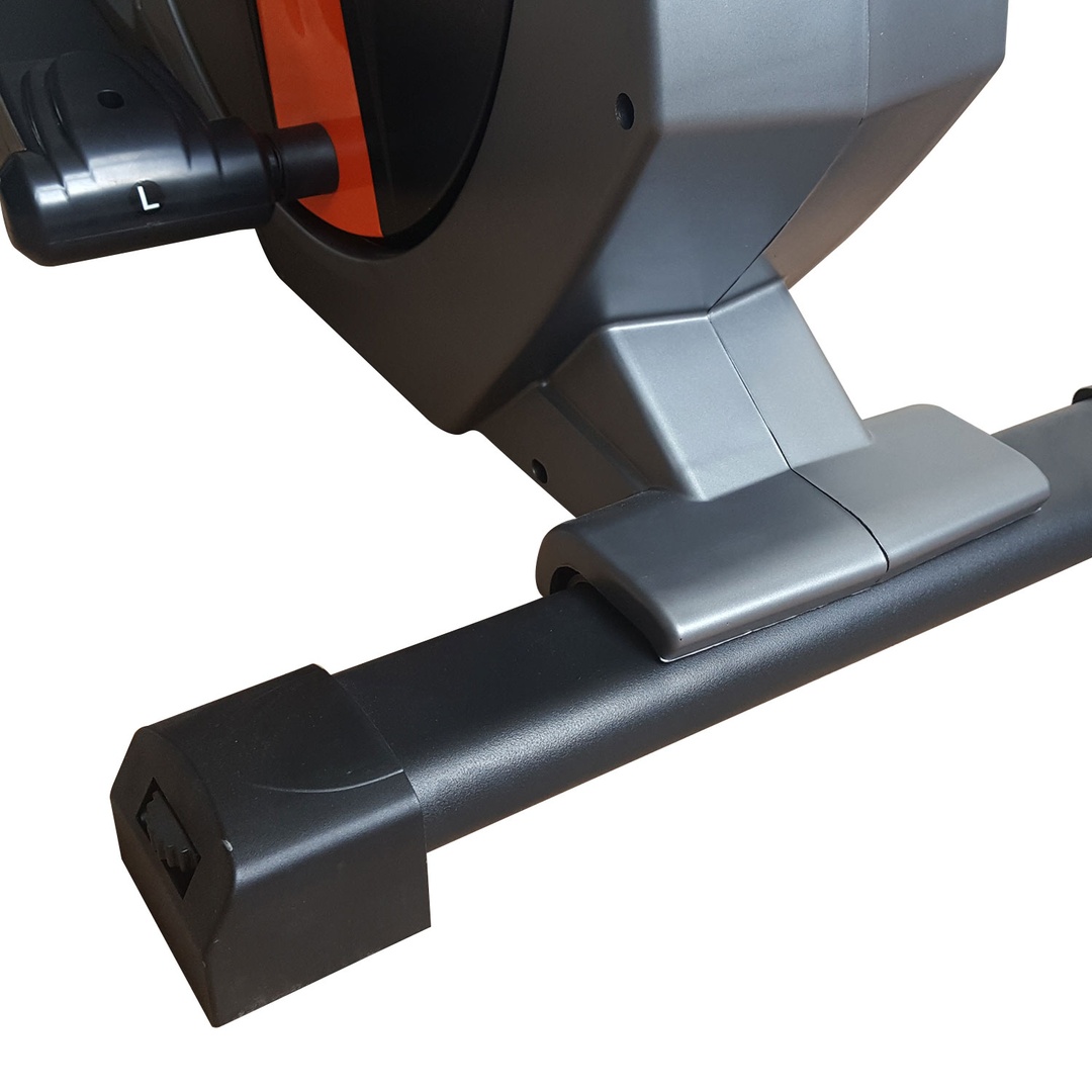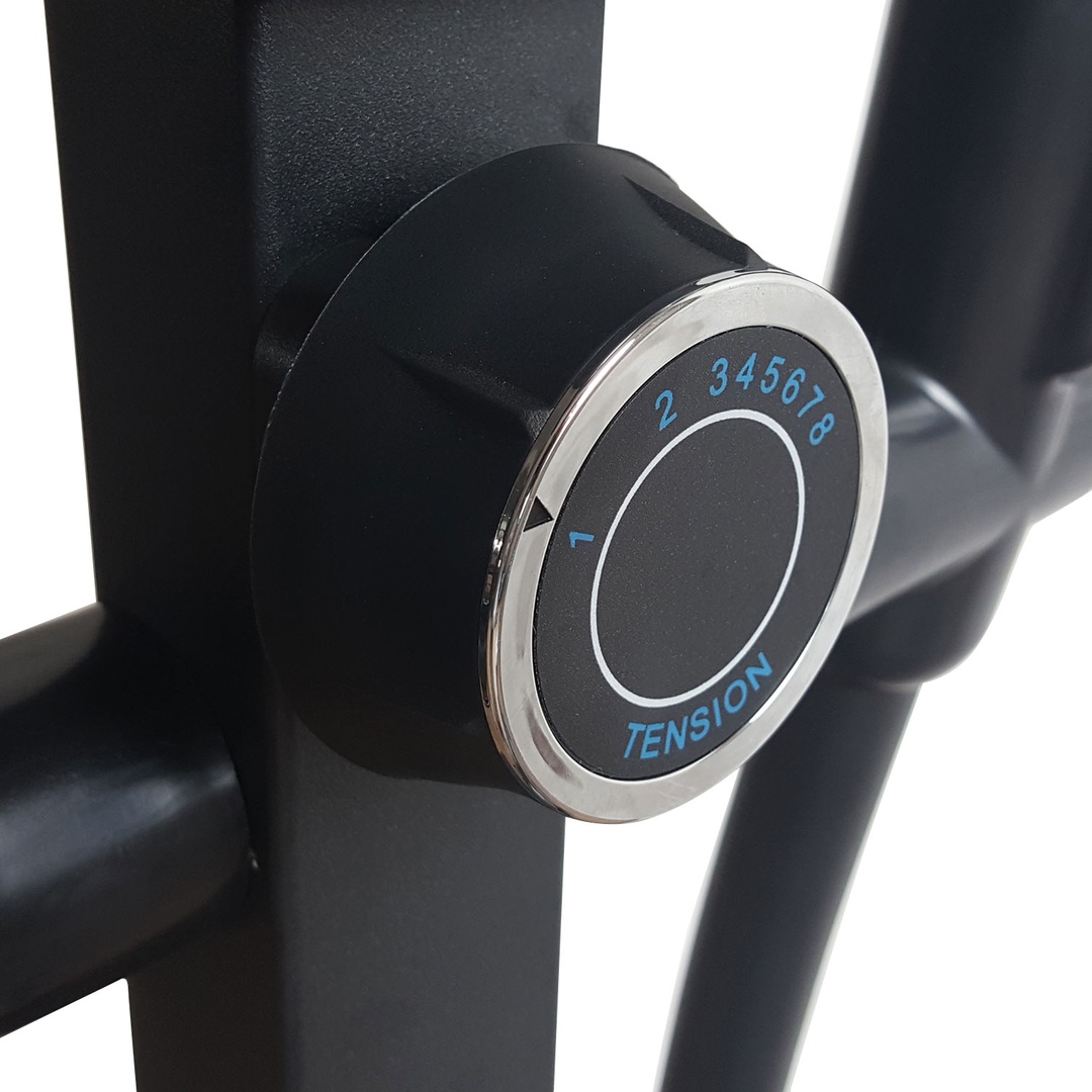 Среднегабаритный эллиптический тренажер для домашнего использования. Тренажер имеет магнитную систему нагружения, с механической регулировкой нагрузки. 8 фиксируемых положений нагрузки с помощью удобной ручки на стойке тренажера.