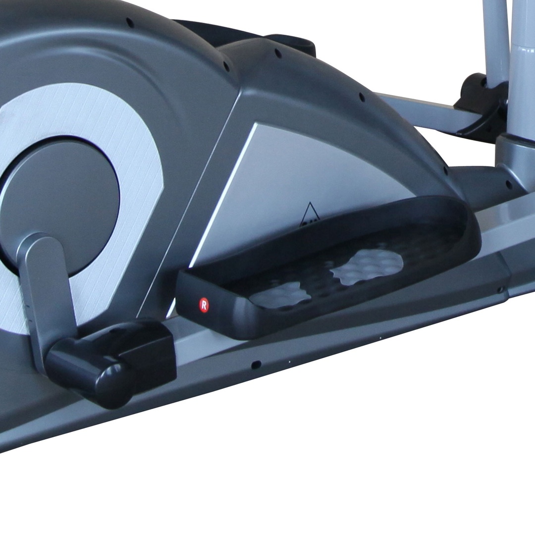 Средне-габаритный эллиптический тренажер для домашнего использования с бесшумной магнитной системой нагружения с электроприводом. Оснащен датчиками измерения сердечного ритма, расположенными на рукоятках.