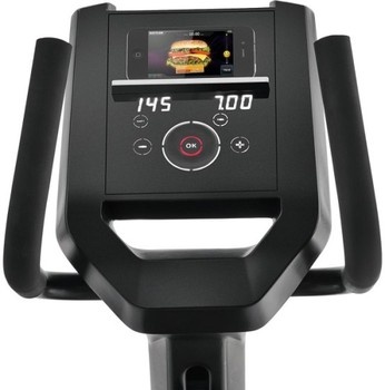 Складная конструкция позволяет экономить место в квартире. Для дополнительного удобства предусмотрена регулировка консоли по высоте. Эллиптический эргометр оснащен Bluetooth-интерфейсом для синхронизации тренировочного компьютера со смартфонами (поддержка Android и iOS). Тренировочный компьютер вмещает в себя целевые программы (время, дистанция, израсходованные калории) и 2 пульсозависимые. А также, при синхронизации со сматфоном, можно загружать неограниченное количество программ, в т.ч. пользовательские. Контроль пульса осуществляется сенсорными датчиками на рукоятках. Также есть возможность подключить беспроводной нагрудный кардиодатчик (в комплекте) для самого удобного и точного измерения пульса во время тренировок.