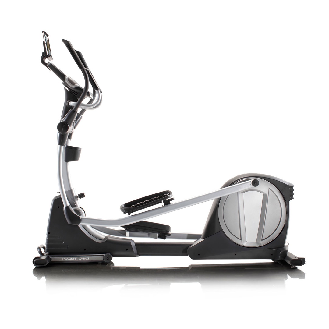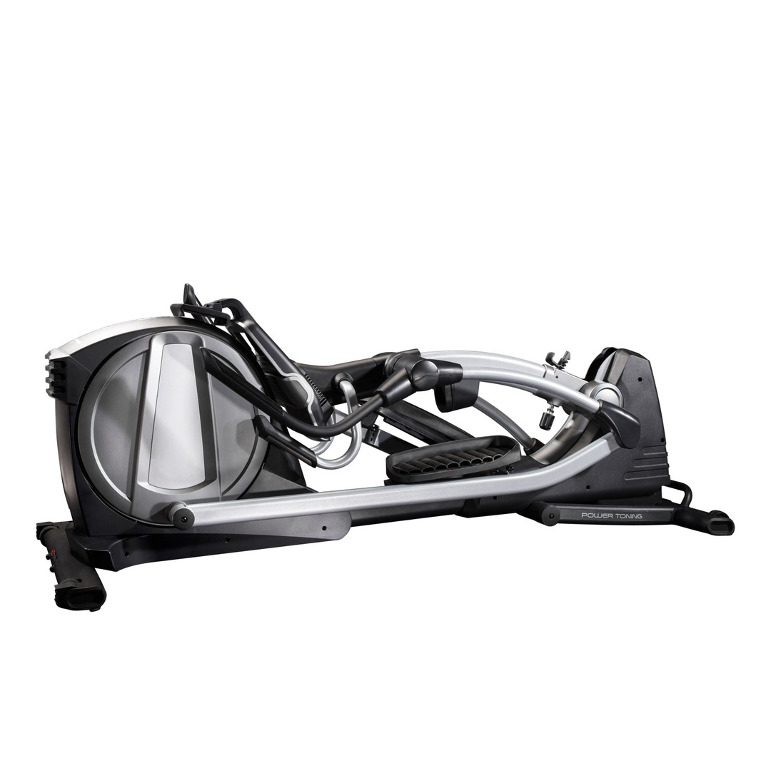 Домашний эллиптический тренажер с классическим заднеприводным расположением маховика весом 8 кг и длиной шага 46 см. 22 уровня бесшумного магнитного сопротивления с электронной регулировкой, 24 встроенные программы.