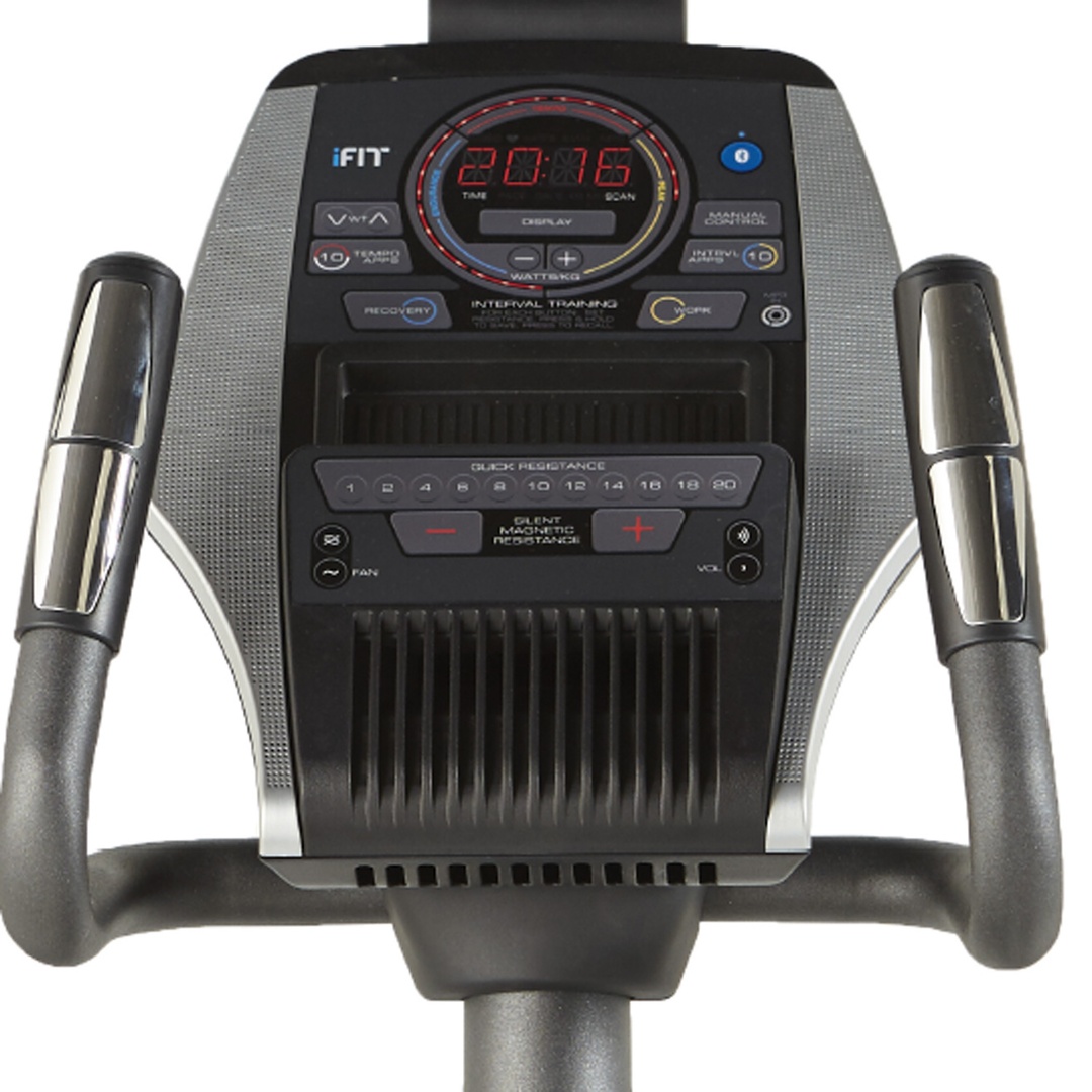 Оснащен датчиками измерения сердечного ритма EKG™ Grip Pulse, расположенными на рукоятках. Консоль с LED–дисплеем и понятным круговым интерфейсом поддерживает соединения Bluetooth® для нагрудного датчика пульса и смарт-устройств через приложение iFit®.