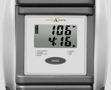 Черно-белый LCD-дисплей диагональю 9 см одновременно выводит на экран различные параметры тренировки - время, дистанцию, калории, махи и махов всего.