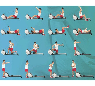 Тренажер довольно универсальный, кроме направленной тренировки на греблю можно выполнять эффективную разминку, 18 тренировочных программ позволяют тренироваться по любым методикам. Корпус тренажера выполнен из высококачественной стали, педали-платформы для ног изготовлены из крепкого не бьющегося ABS пластика, который выдерживает большие нагрузки. Упоры для ног двигаются, сверху имеют специальные закрепляющиеся ремешки, чтобы ноги уверенно сидели на своем месте во время тренировки. В комплект входит дополнительная мягкая подставка для спины, она крепиться на конце салазок, по которым ездит сиденье, после этого можно ложиться на неё спиной, голову опускать на сиденье и делать одну из полезных групп упражнений. Удобный механизм складывания позволяет сложить в компактное вертикальное положение гребной тренажер и спрятать до следующей тренировки, например за шкафом или под кроватью. Тренажер при этом занимает минимум места. Транспортировочные ролики помогут легко и быстро перевозить тренажер по квартире к месту его постоянного хранения. Ножки, которыми тренажер становиться на пол закрыты сверху специальными пластиковыми колпачками, которые оберегают пол от царапин во время интенсивной тренировки. Массивный маховик весом в 6 килограмм делает движение плавным и ровным. Система тросов с магнитной системой нагрузки и 10-ю уровнями сопротивления приятно выделяют его среди конкурентов, которые не могут похвастаться таким параметрами.